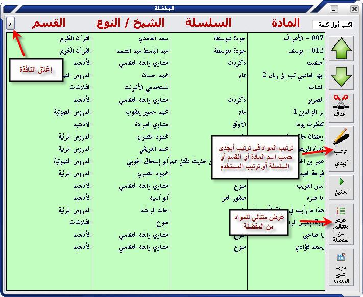 والبرنامج يحتوى على مفضلة يمكنك منها تسجيل المواد التي أعجبتك وتود الرجوع إليها لاحقا فيما بعد