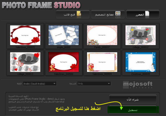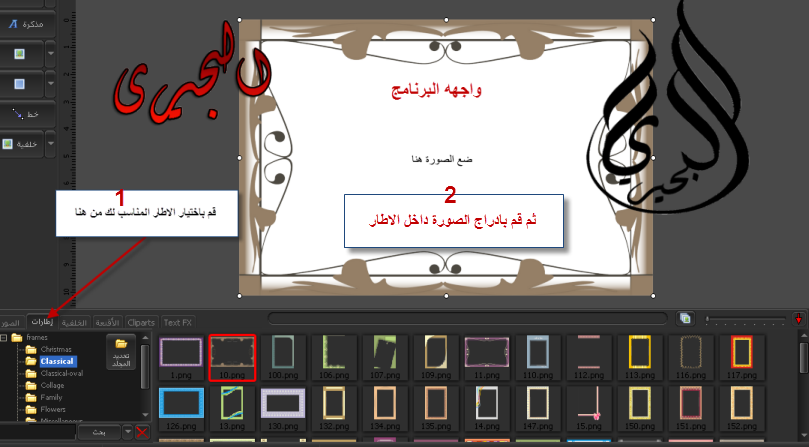 بل يتوفر في البرنامج أكثر من 150 إطار بأشكال جميلة و مميزة