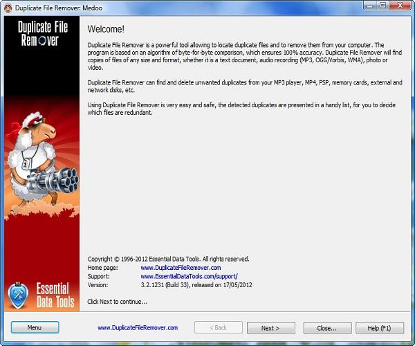 وهو يقوم بمسح ملفات الكمبيوتر وقوائم مكررة استنادا لمقارنة بايت بايت،