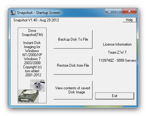 لقسم معين (partition) أو لكامل محرك القرص الثابت ، كما أنه ينشء صورة للنظام. في حال انهيار النظام