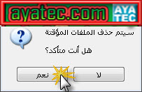 هنا تأكيد لعملية حذف الملفات المؤقتة " اضغط نعم